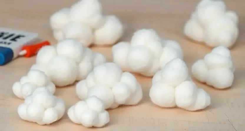 - Украшение стола: Разместите маленькие ватные облака на столе, украсив их блестками или бусинами.