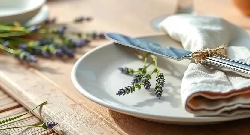 Декор – это то, что делает сервировку стола в стиле Прованс по-настоящему особенной. Вазы с цветами, подсвечники с ароматическими свечами, плетеные корзины с фруктами и овощами – все это поможет создать атмосферу французского шарма. Небольшие статуэтки, винтажные шкатулки и другие декоративные элементы также будут уместны. Важно не перегружать стол декором, чтобы он не выглядел слишком пестро и навязчиво. Лучше выбрать несколько ключевых элементов, которые подчеркнут стиль Прованс.