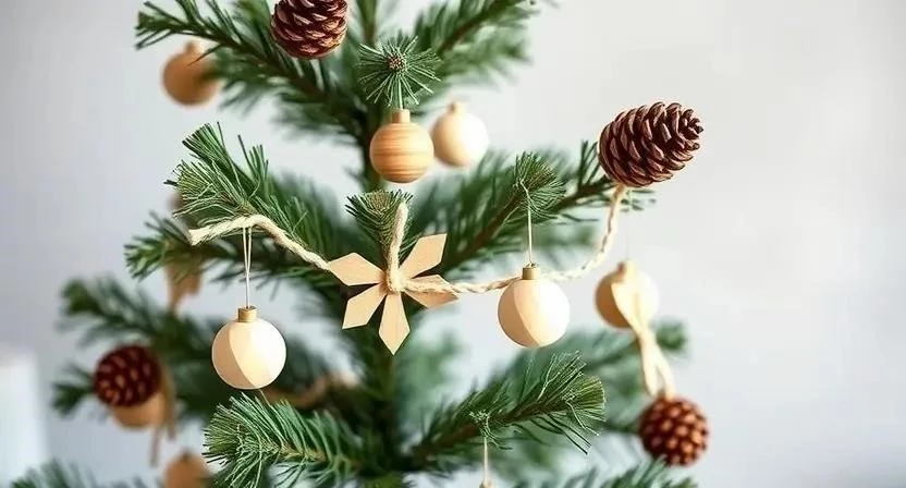 Ответ: Используйте минималистичные украшения, деревянные игрушки, бумажные гирлянды и шишки.
