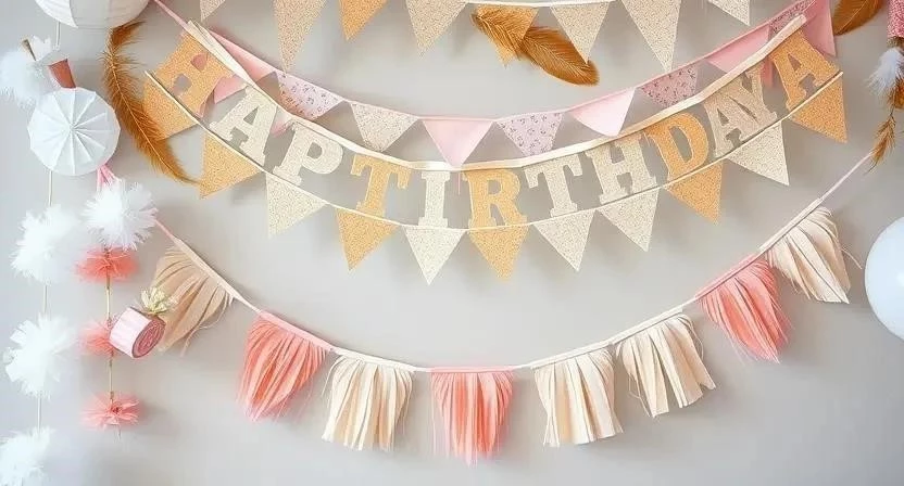 Ответ: Гирлянды из ткани, бумажные цветы, венки из перьев.