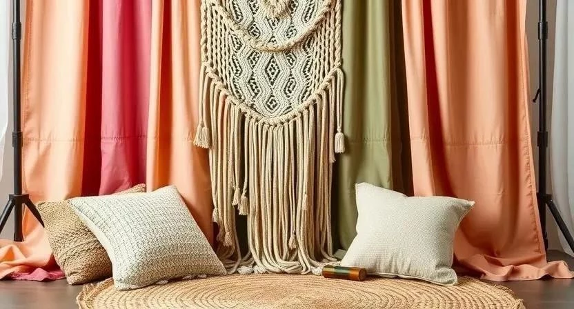 Скатерти, салфетки, подушки и ковры с этническими узорами – важный элемент бохо-декора. Они создают атмосферу уюта и комфорта. Я предпочитаю использовать натуральные ткани, такие как хлопок и лен. Однажды я нашел старый ковер с восточным узором – он идеально подошел для оформления фотозоны.