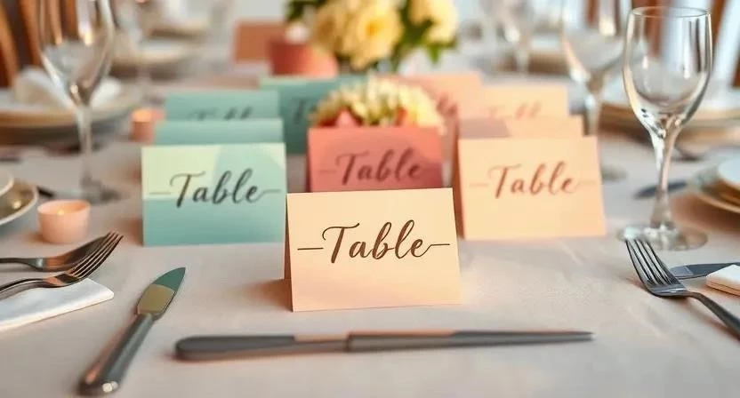 Расположение табличек на столе должно быть продуманным и гармоничным.