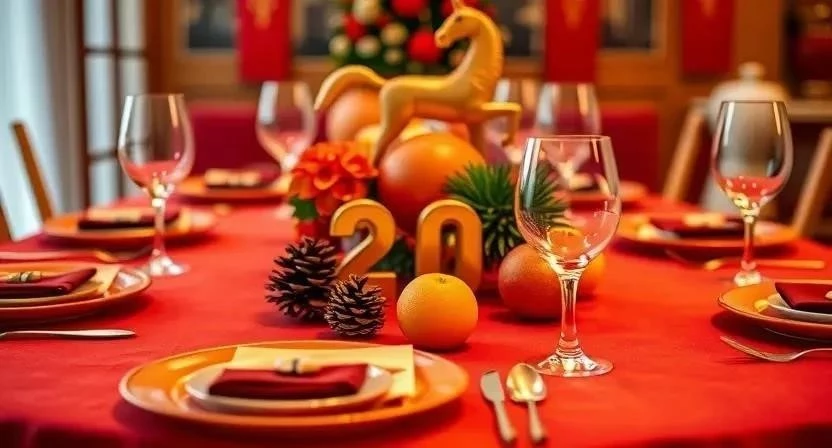 Вопрос: Какие цвета лучше использовать для украшения новогоднего стола в 2026 году?