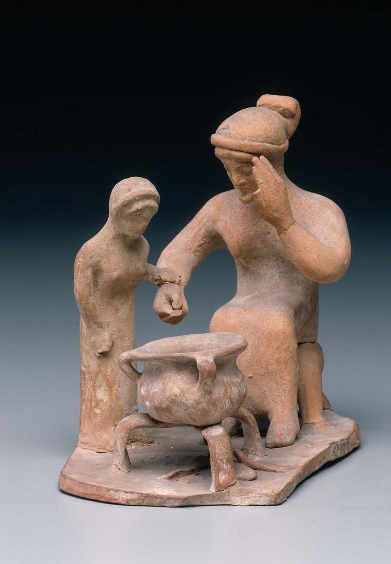 Девочка наблюдает за приготовлением еды. Греция, около 500–475 года до н. э.